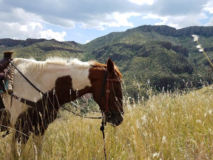 Riders travel each day down scenic rugged trails, through rocky canyons, up and across rhyolitic mountains while frequenting a number of notable landmarks, vistas and spring-fed swimming holes as they travel to each night's encampment. Expect a full day in the saddle while on our mountain trained horses or sure-footed mules. Cavalcade covers close to 30 miles of trail!