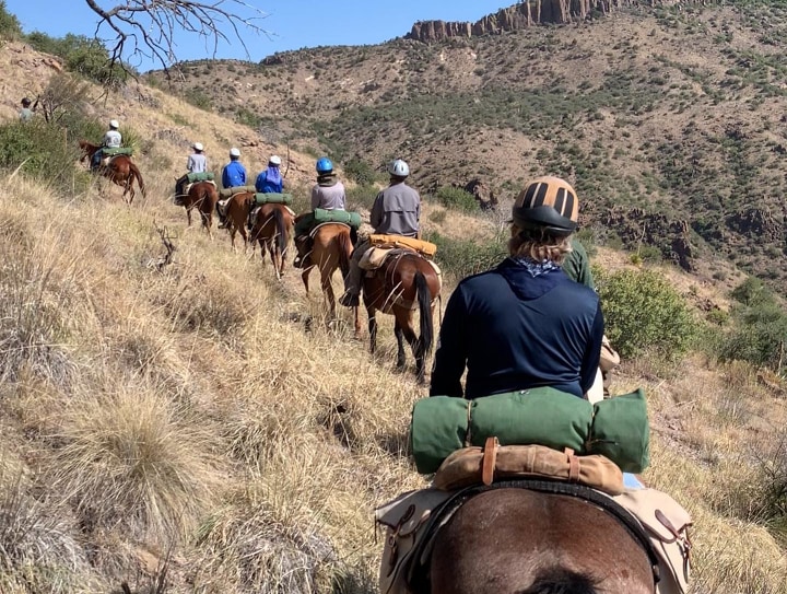Each Cavalcade is guided by 2 of our experienced Wranglers. Cavalcade can take up to 8 participants at a time. 2 adults minimum and 1 of them must be Wilderness First Aid Certified. All riders must way less than 225 lbs dressed to ride. Horseback riding experience is a must. At least equivalent to the horsemanship Merit Badge.